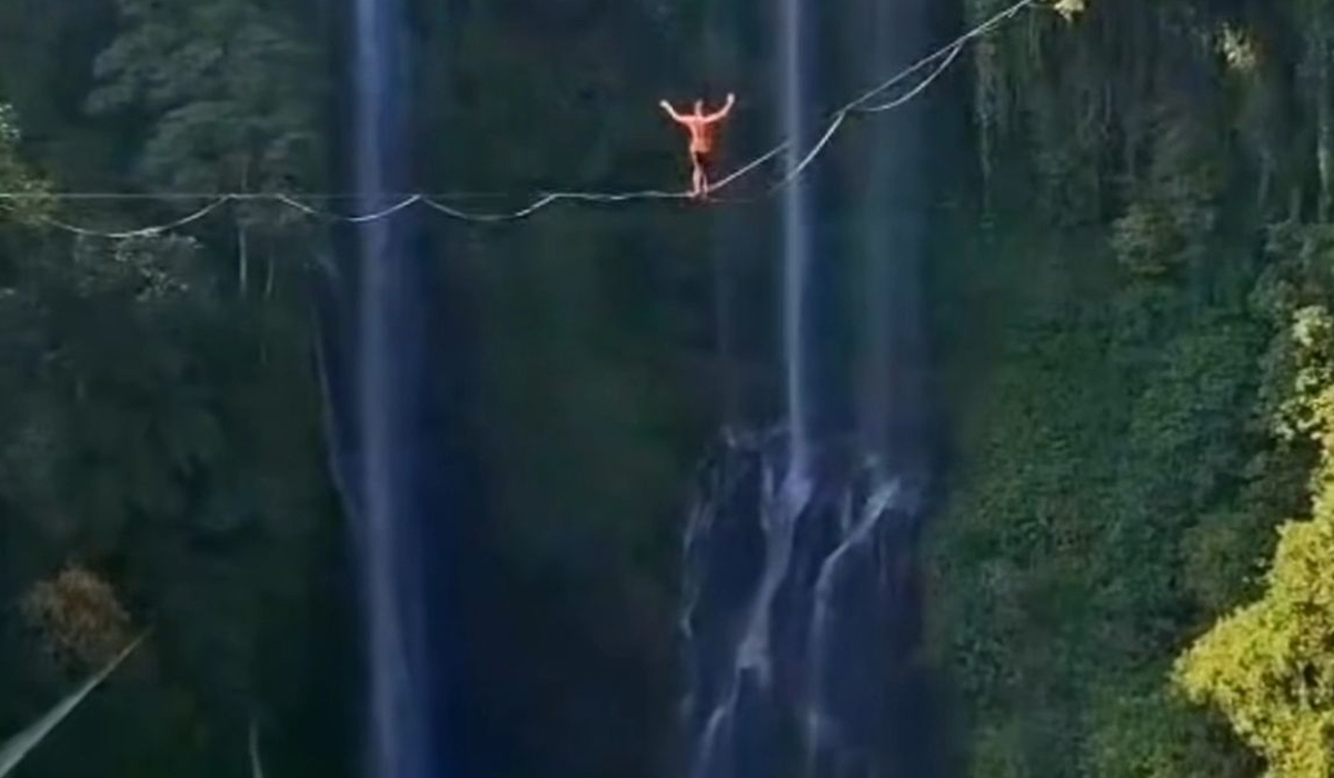 Aksi nekat seorang WNA meniti tali di atas jurang di Air Terjun Sekumpul, Buleleng, Bali, telah menjadi perbincangan di media sosial.